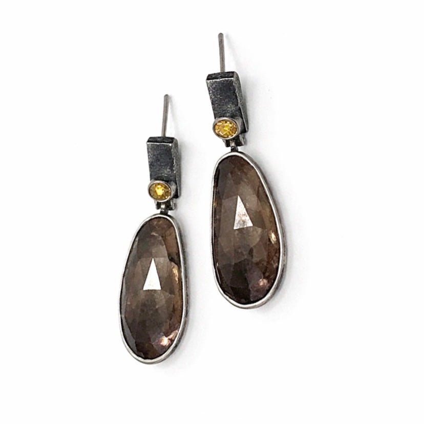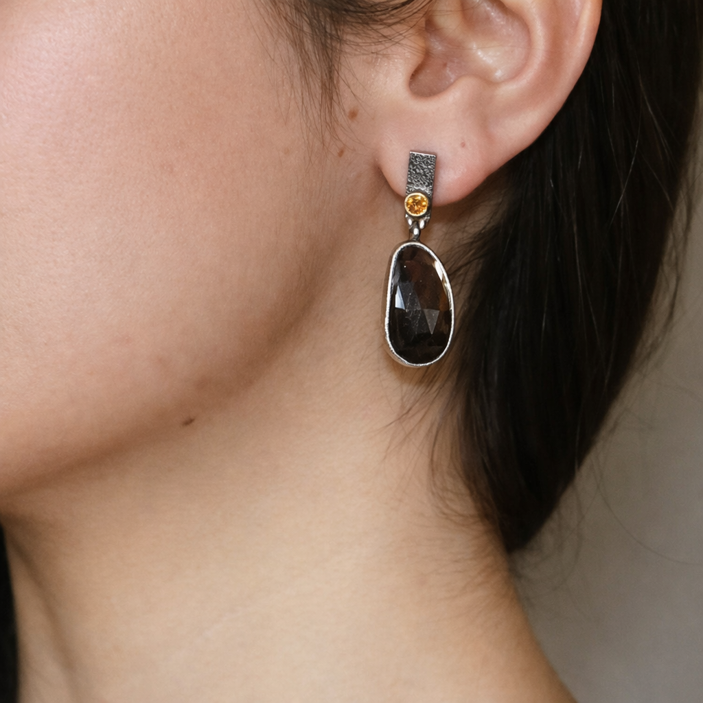Rose-cut stones glow with an inner warmth, paired with clean lines and textured metal. An understated statement that feels refined, balanced, and effortlessly wearable.