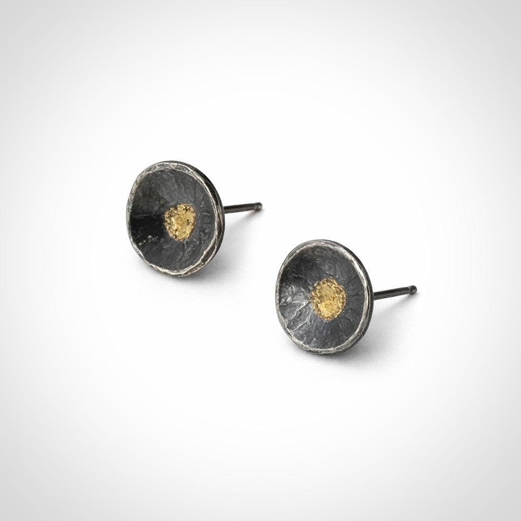 A simple form with depth and warmth, these oxidized silver studs with a golden center bring a soft, architectural feel that elevates both casual and dressed-up looks.